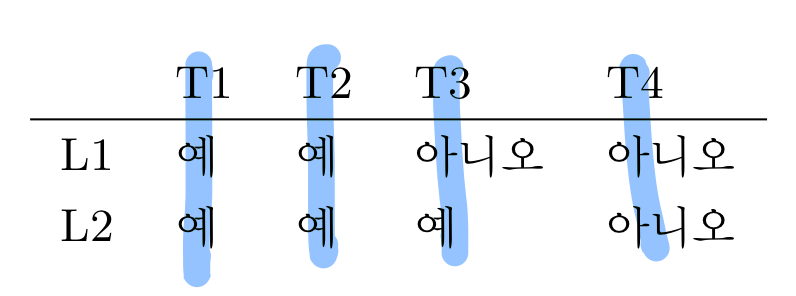 위와 같이 각각의 쓰레드들이 L1,L2락에 접근하게 되는 경우를 생각해본다. T1과 T2과 동시에 실행되지 않도록 하면 될 것이다.