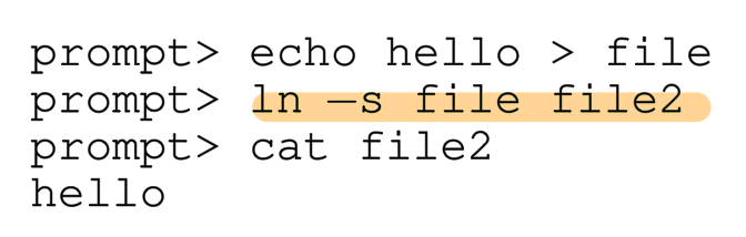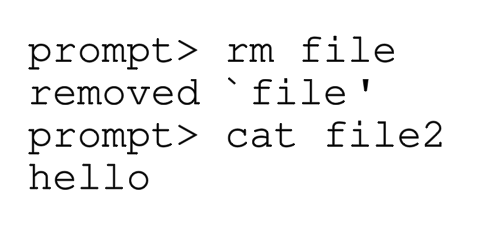 file이 삭제 됐지만 여전히 file2를 실행하면 파일이 존재 함을 알 수 있다. 폴더의 구조는 위에처럼 변화할 것이다. rm시에 unlink()가 호출 된다고 했는데, 각각의 파일의 참초 횟수(reference count)를 검사한다. 이 참조횟수를 -1하고 0에 도달하면 데이터 블럭을 해제하여 파일을 진짜로 삭제하는 것이다.