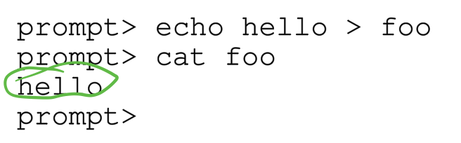 echo의 출력을 foo로 전송하여 그 파일에 "hello"를 저장하도록 한다. 이후에 cat 명령어를 사용하면 hello가 출력됨을 알 수 있다. 리눅스의 strace와 맥OS의 dtruss를 통해서 어떠한 시스템콜들이 호출됐는지를 살펴 볼 수 있다.