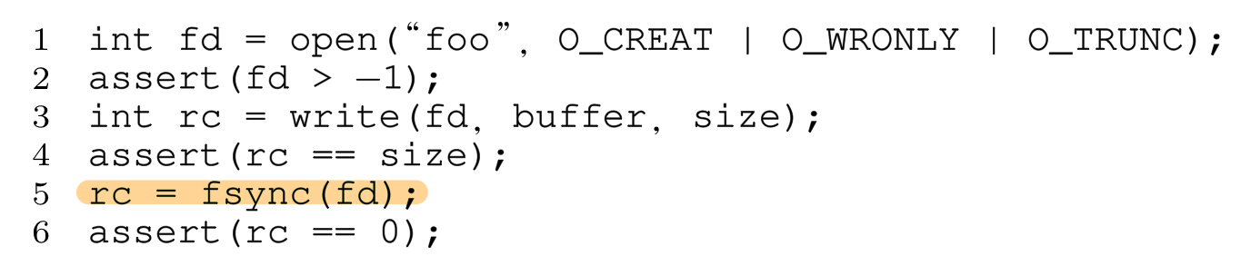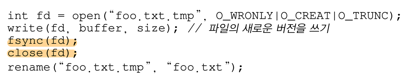 어떤 경우에는 foo가 존재하는 디렉토리도 fsync()를 해주어야 파일 자체와 이파일이 존재하는 디렉토리 모두를 안전하게 디스크에 저장 할 수 있다.