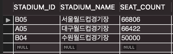 SELECT STADIUM_ID, STADIUM_NAME, SEAT_COUNT