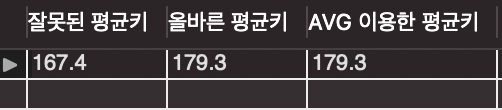 SELECT ROUND(SUM(HEIGHT)/COUNT(*),1) AS ' 잘못된 평균키',