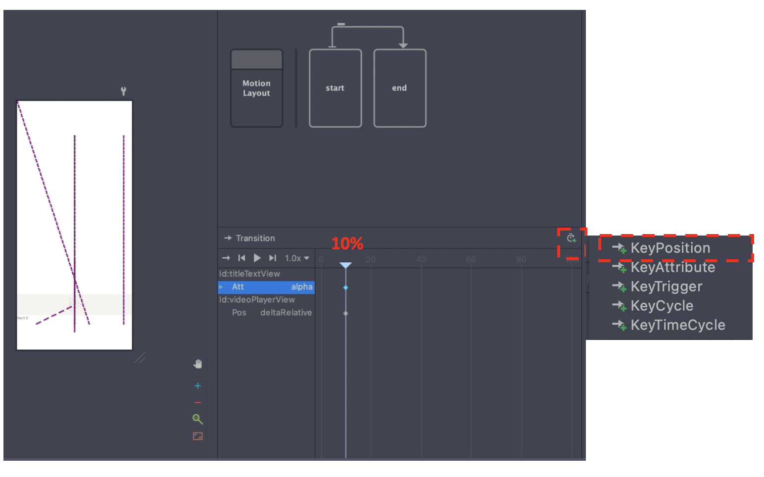 # 모션레이아웃에 Key Position속성 주기