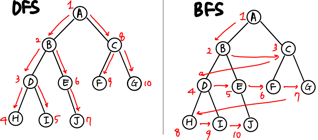 BFS와 매우 유사하지만, 방문해야할 노드들을 스택으로 표현하냐 큐로 표현하냐에 따라서 달라진다.