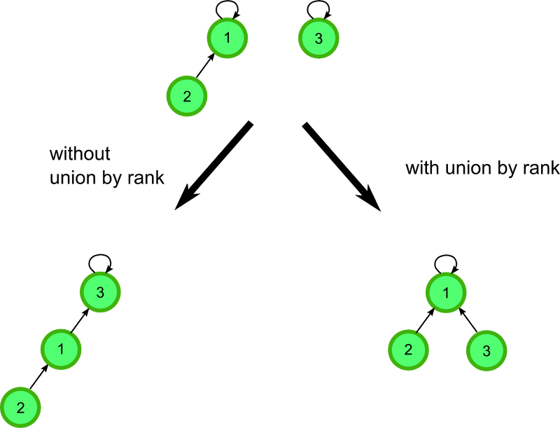 그렇기 때문에 두 그래프를 합치기 전에 각 그래프의 rank(높이)를 살핀 후, 작은 rank를 가진