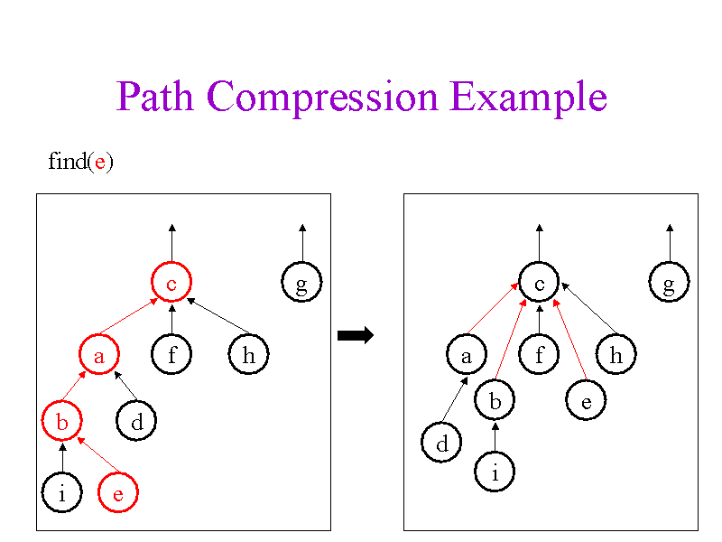 path-compression 를 사용하여 한번 find를 실행한 노드는 다음부터 root노드를 한번에 찾게 해줌