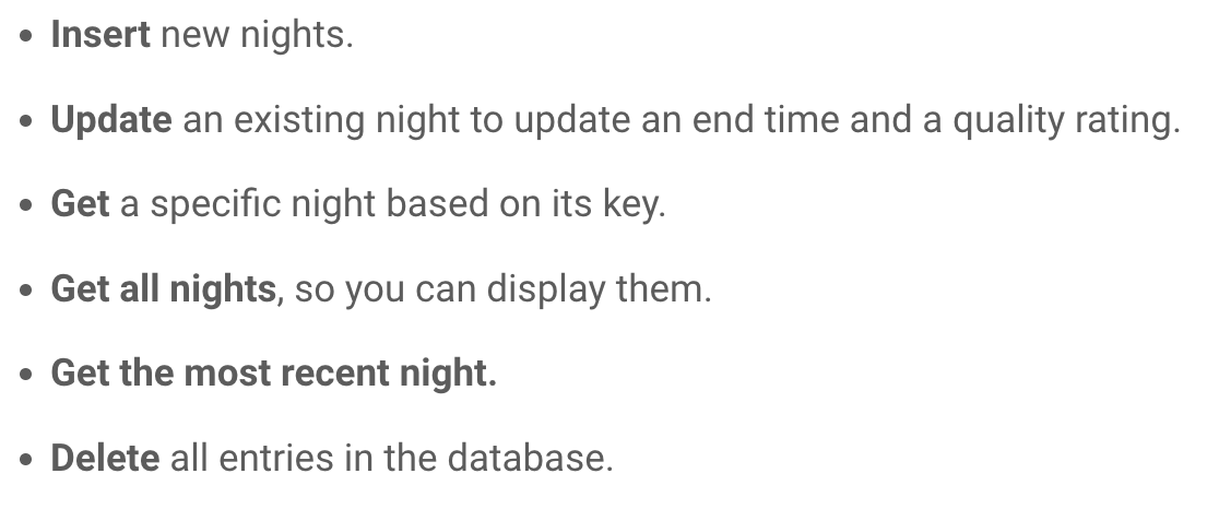@Database(entities = [SleepNight::class], version = 1, exportSchema = false)