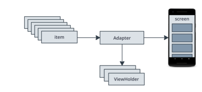 리사이클러뷰에서 이러한 어댑터를 사용해 앱의 데이터(data)를 리사이클러뷰의 화면에 표시될 수 있도록 한다.