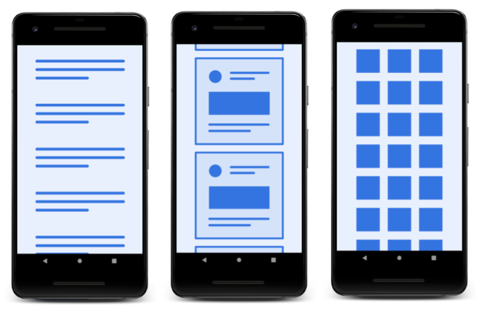 앱에서 리스트의 데이터를 표현하는 경우는 매우 흔한 일이며 간단한 형식부터 복잡한 형식까지 매우 다양하다. 이러한 것을 쉽게 만들 수 있게 안드로이드에서는 RecyclerView라는 위젯을 제공한다.