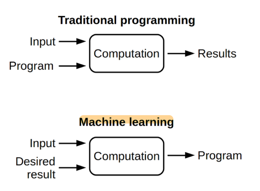 일반적인 프로그래밍은 Input으로 어떠한 값을 넣으면, 내가 코딩했던 알고리즘에 따라서 결과값을 반환한다.