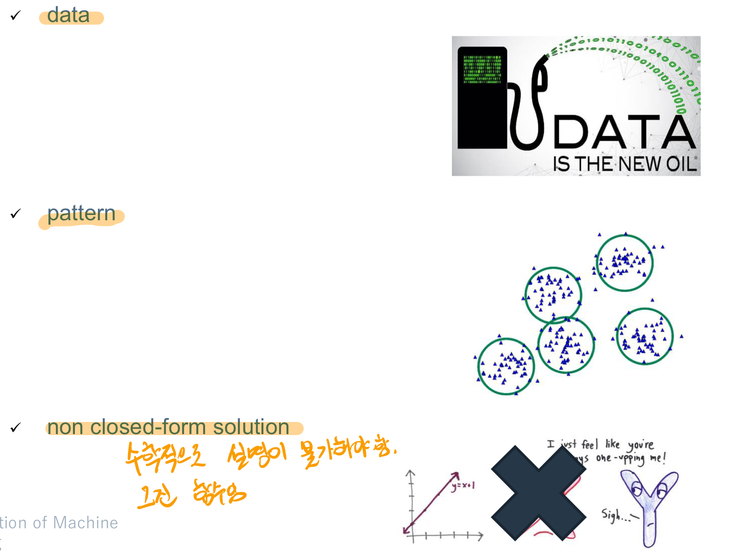 기계학습은, 주어진 데이터로부터 내가 풀고싶어하는 문제에 해당하는 규칙을 찾는 것이다. 규칙을 찾는 것에 대한 포먼스라는 척도를 통해서 얼마나 잘 찾는지에 대한 평가를 한다.
