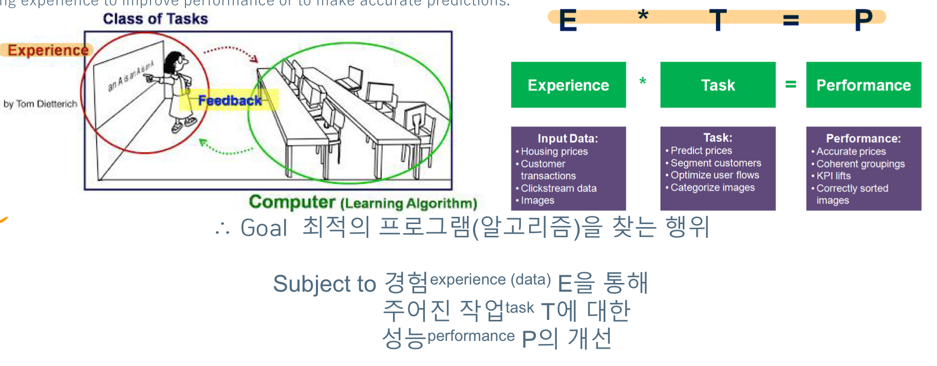 컴퓨터 비전시간에도 나왔던 PTE개념이 등장한다. 경험을 통해 주어진 작업에 대한 성능의 개선을 한다.