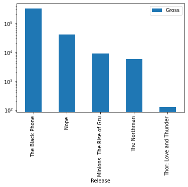 - 각각의 Gross수치의 편차가 너무 큰 나머지 첫번째 데이터를 제외한 나머지 데이터들을 파악하기 어려움
