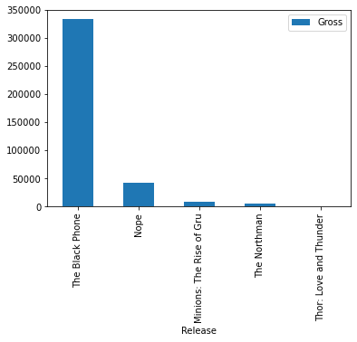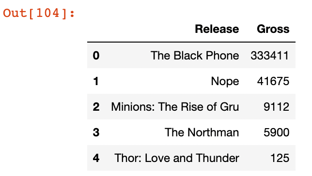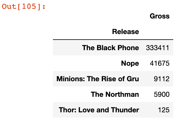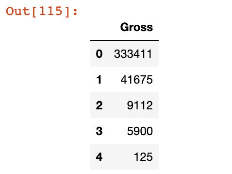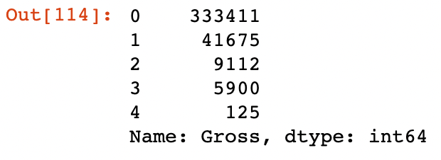 이제 시각화 전 마지막 단계로, 영화명과 Gross만을 가지는 새로운 DataFrame을 만들어 보자.