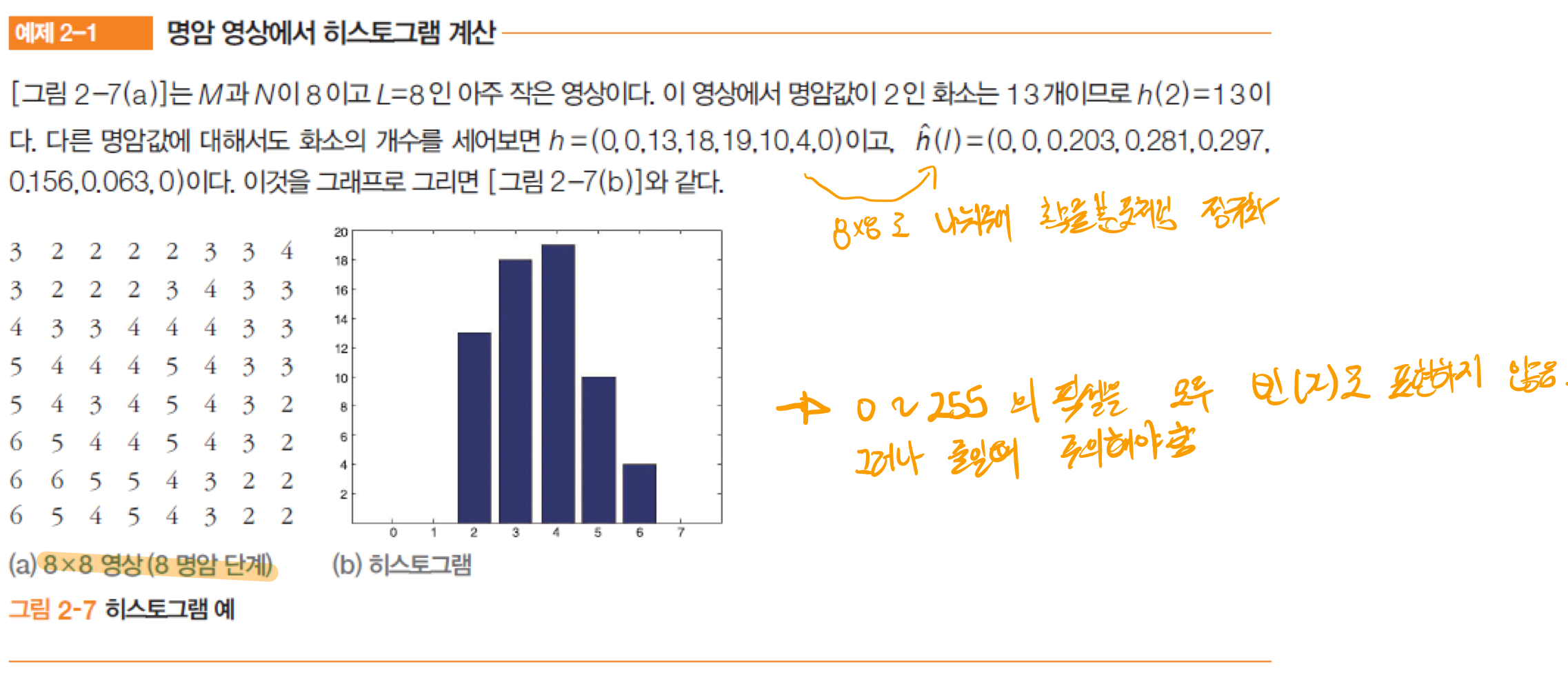영상자료(사진)는 각각의 픽셀을 가진다. 그 픽셀에는 R,G,B의 3채널 또는 명암과 같은 요소들이 들어간다. 0~255(256개)의 수치로 이러한 값들을 표현하게 되는데 이것을 히스토그램으로 옮길 수 있다. 이러한 히스토그램을 보면서 영상의 특성을 파악할 수 있다.