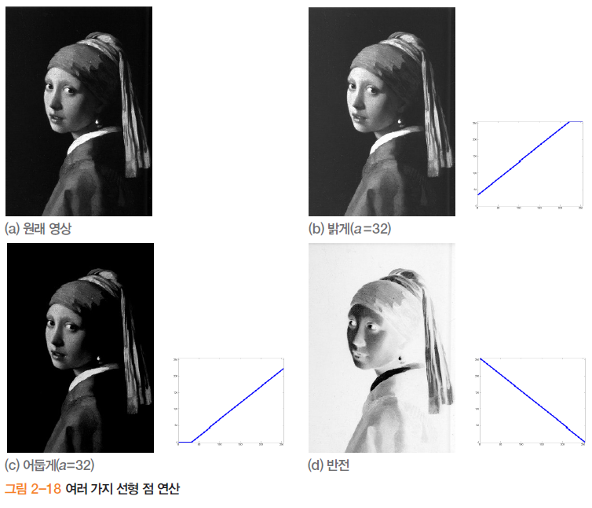 a의 값을 더하거나 빼 영상을 밝게 또는 어둡게 만든다.