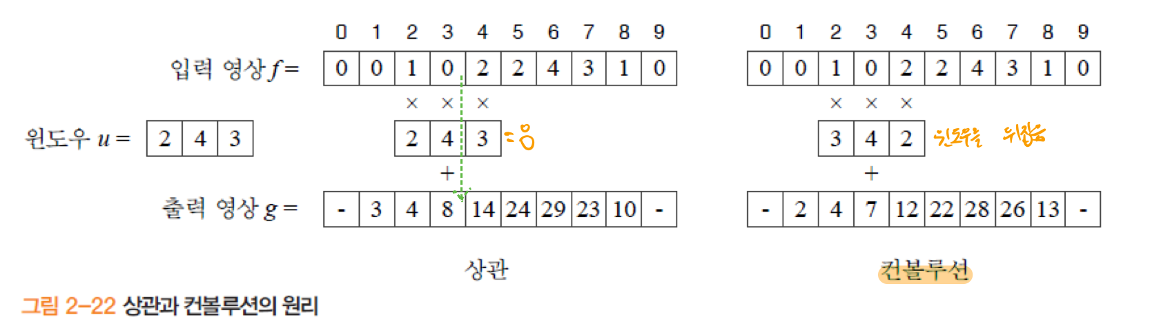 컨볼루션은 선형이다. 그림 2-22와 같이 상수를 변수에 곱하고 단순히 합하기 때문이다.