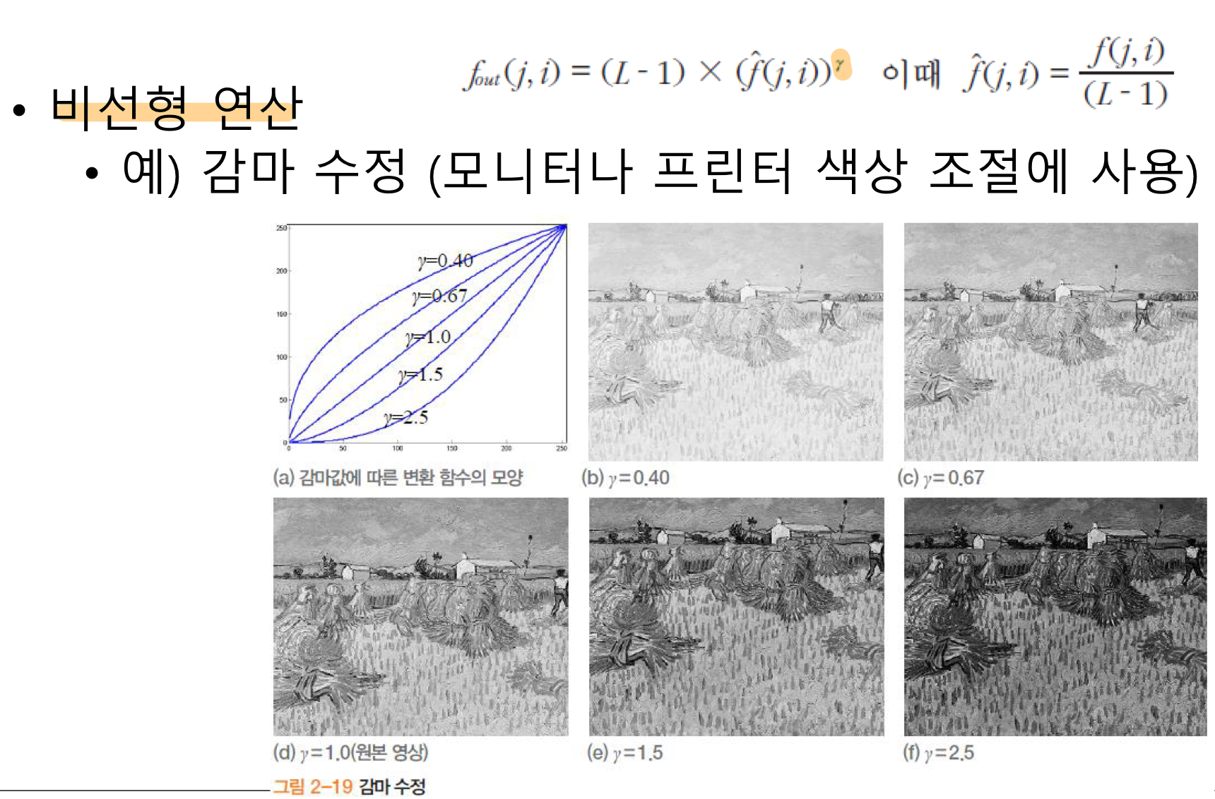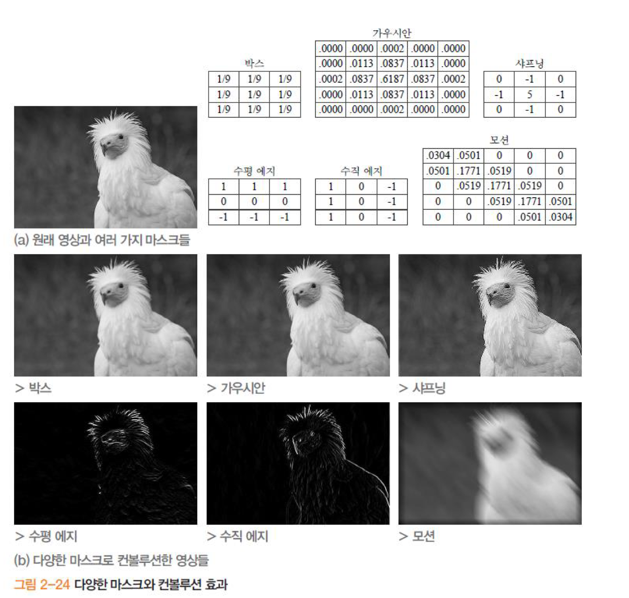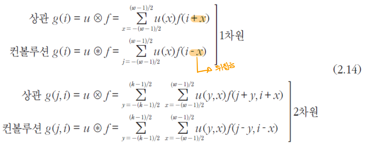 이웃 화소의 명암값에 따라 새로운 값이 결정 된다. 상관과 컨볼루션으로 나뉘며, 상관은 윈도우를 그대로 사용, 컨볼루션은 뒤집어 사용한다. 그러나 딥러닝은 윈도우자체를 학습시키기에 상관or컨볼루션에 대한 신경을 쓰지 않는다고 했다. 어차피 윈도우 자체를 알 필요가 없기 때문이다.