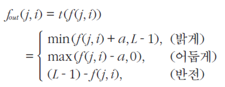a의 값을 더하거나 빼 영상을 밝게 또는 어둡게 만든다.