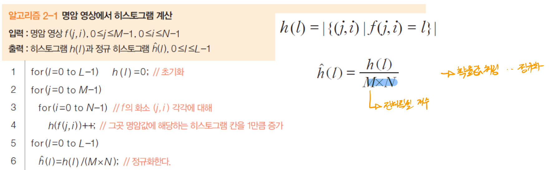 히스토그램을 정규화 하여 확률분포적 측면에서 바라 볼 수 있도록 한다. 픽셀(M*N)의 값으로 각 빈도를 나누어 준다. 이런 경우 각 bar의 총 합은 1이 된다.