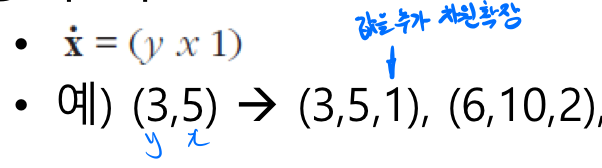 (3,5)에서 1을 추가하여 동차 좌표를 만든다. (3,5,1)을 통해 차원을 확장 시킨다.