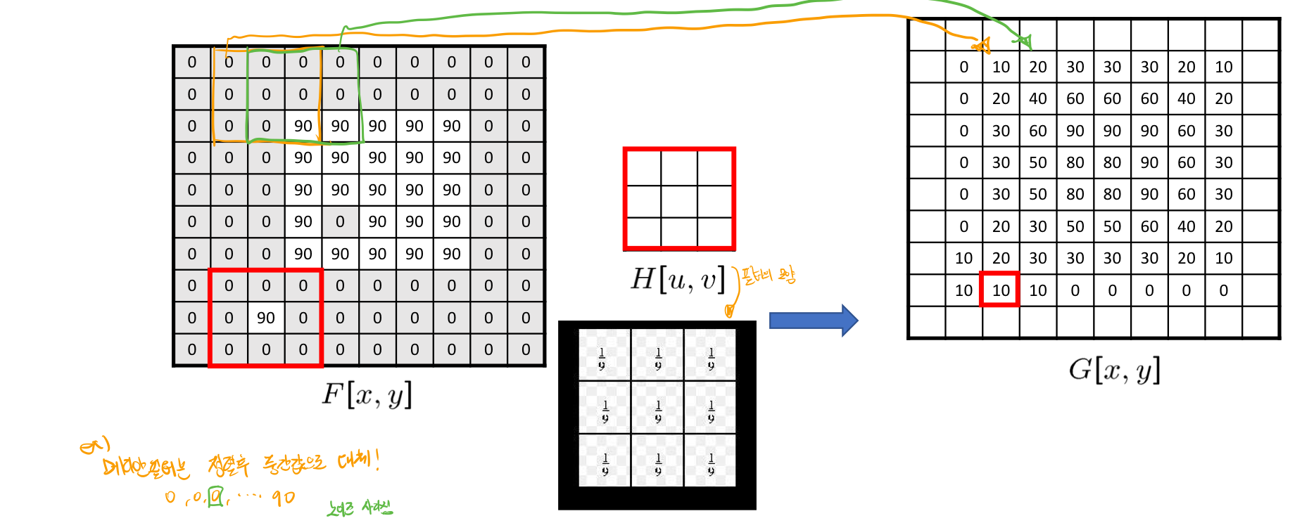 윈도의 내에서 평균낸 값을 더해줘서 변환시킨다. 즉 해당 값은 주변과 비슷해지게 된다.