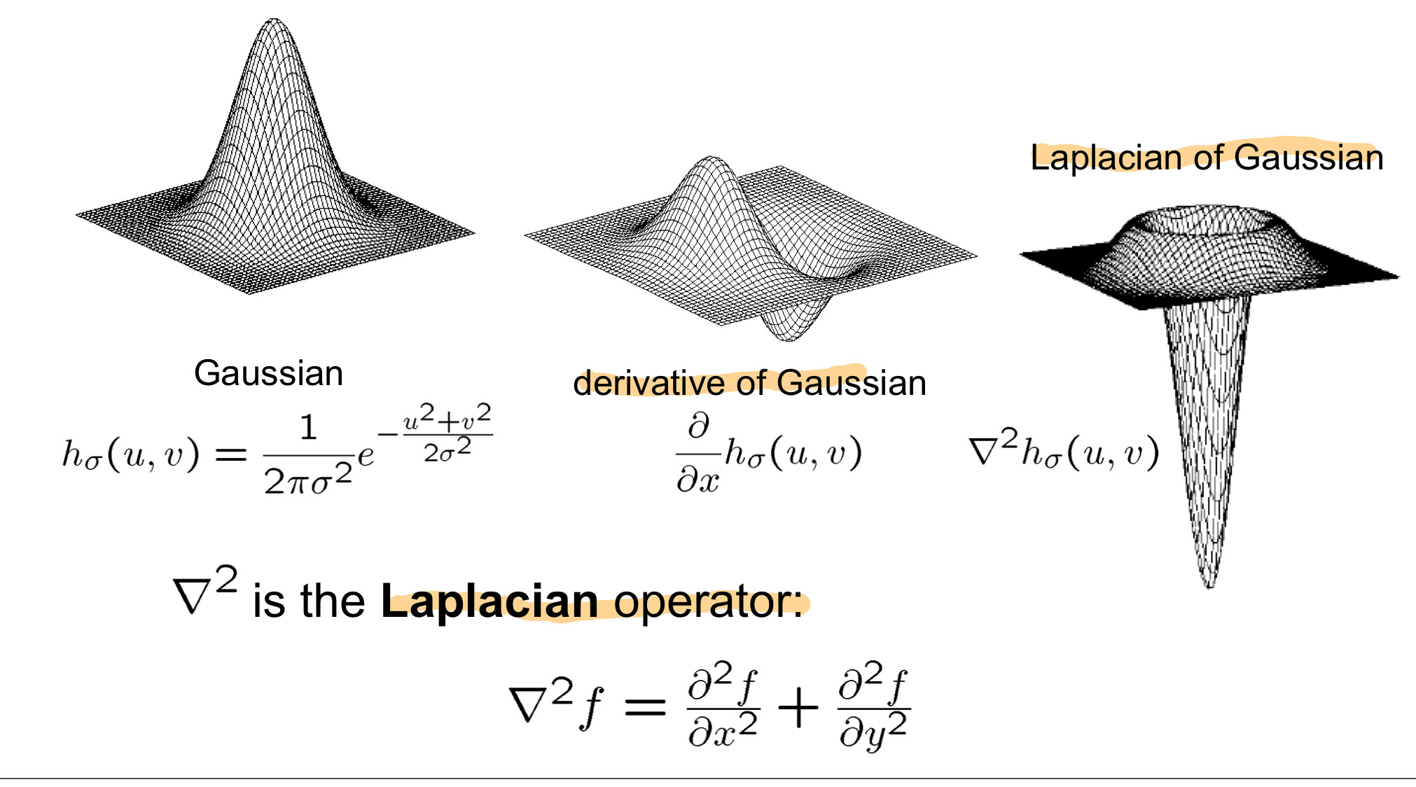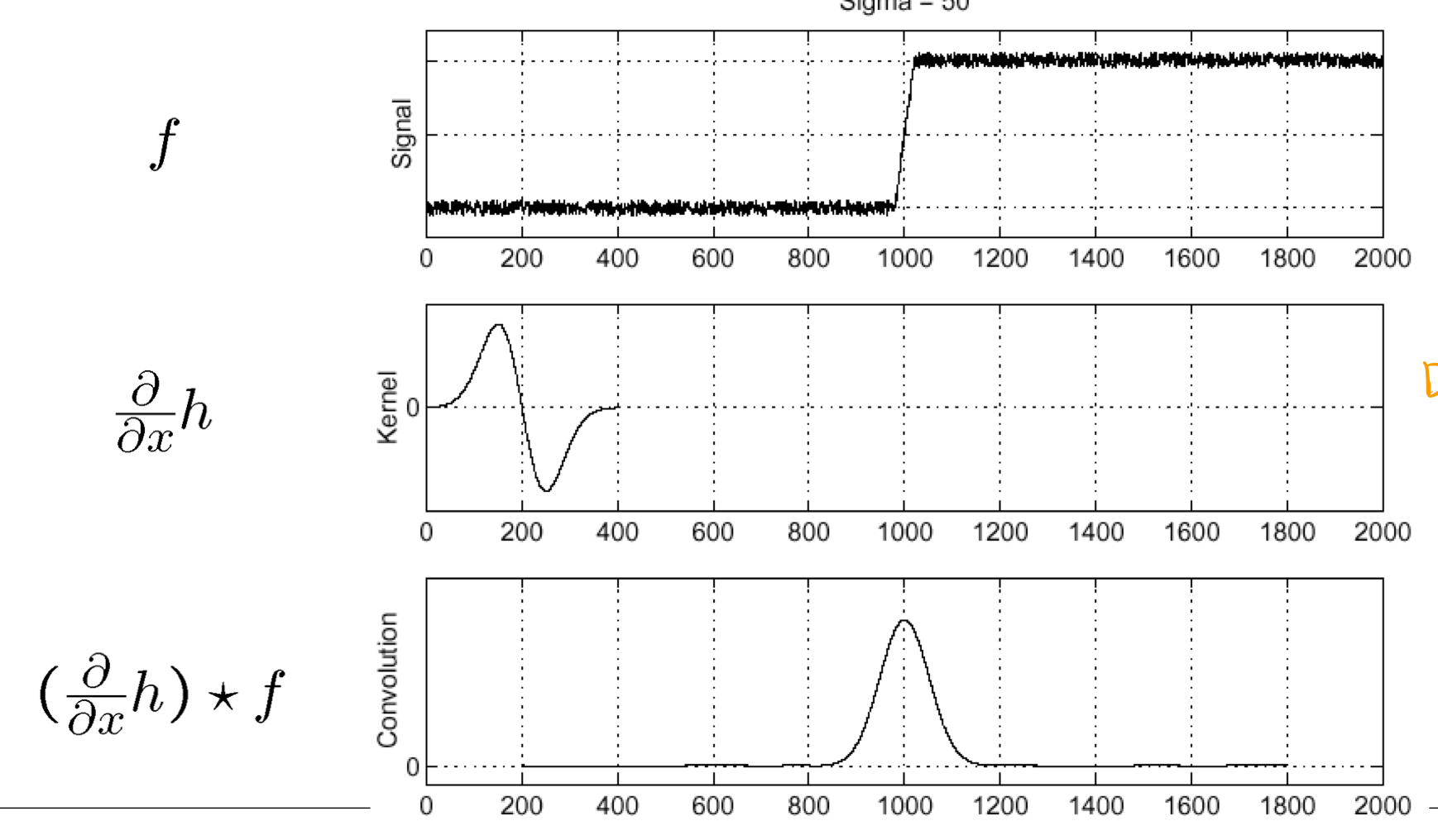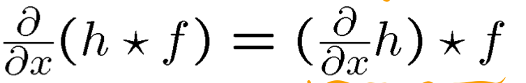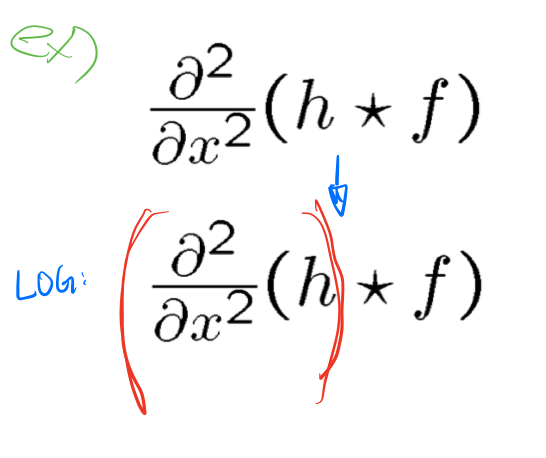 앞서 봤던 원본에 가우시안에 필터를 돌리고 미분하는게 아닌, 가우시안 필터를 미분하고 원본에 그 필터를 돌리면 된다. 결합법칙이 주는 힘으로 번거로운 과정을 줄였다.