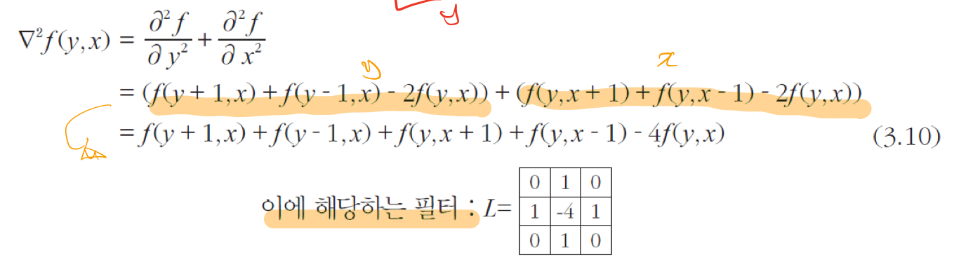 라플라시안 연산자, 2차 미분을 구해주는 마스크를 얻을 수 있다.