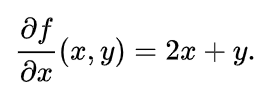 x에 대해서 미분하기 때문에 y에 대해서는 그냥 상수취급하여, x^2 -> 2x , xy -> y , y^2 -> 상수로 없어진 것을 알 수 있다.