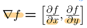 그래디언트는 간단히 말해, x축 방향의 미분과 y축방향의 미분을 한꺼번에 벡터로 표현한 것이다. 삼각형을 뒤집어 놓은 꼴로 표기한다.