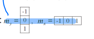 소벨 연산자의 my , mx모두가 주어졌다. 이를 이용해 dy, dx의 편미분을 구해보자.