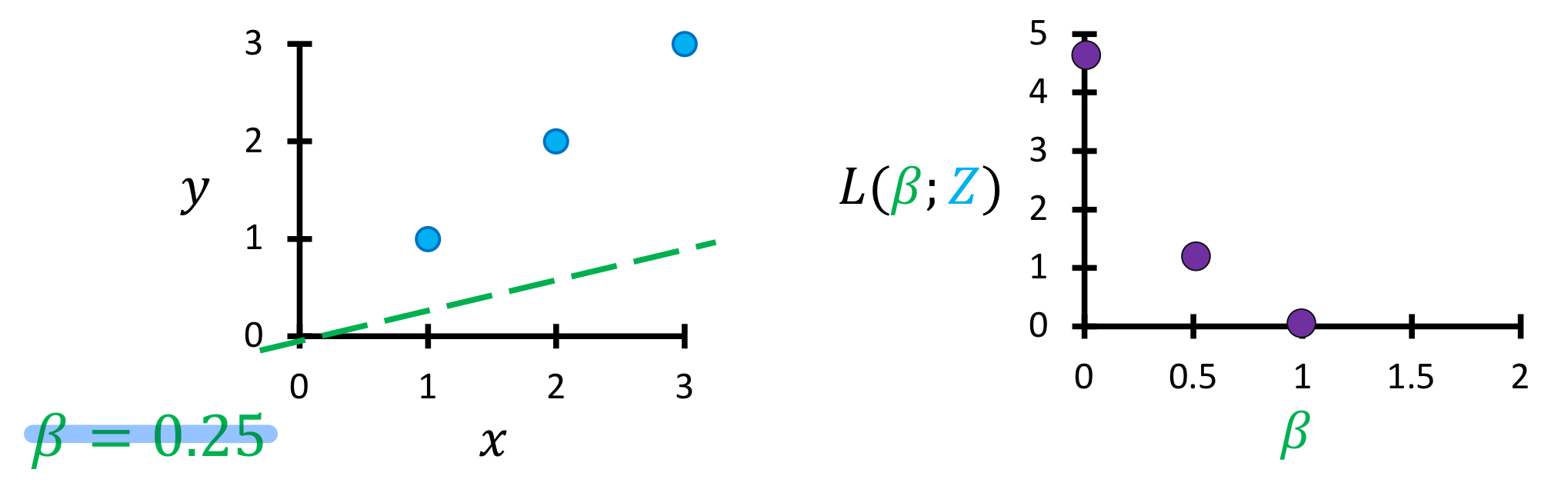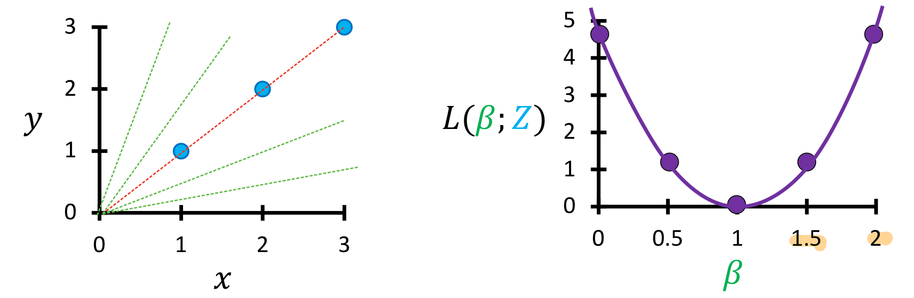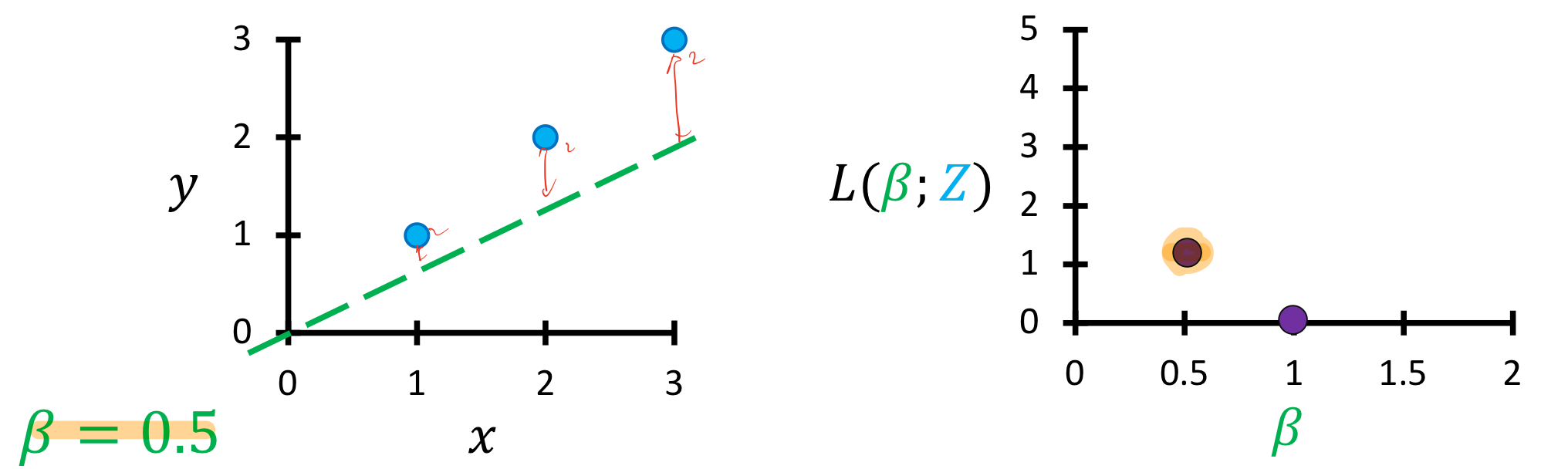 즉 가장 찾아야하는 원본 y와 비슷한 함수를 찾는 것이 목표이다. 이를 위해서는 파라메타(베타)를 가장 최적에 가깝도록 만들어야 한다.