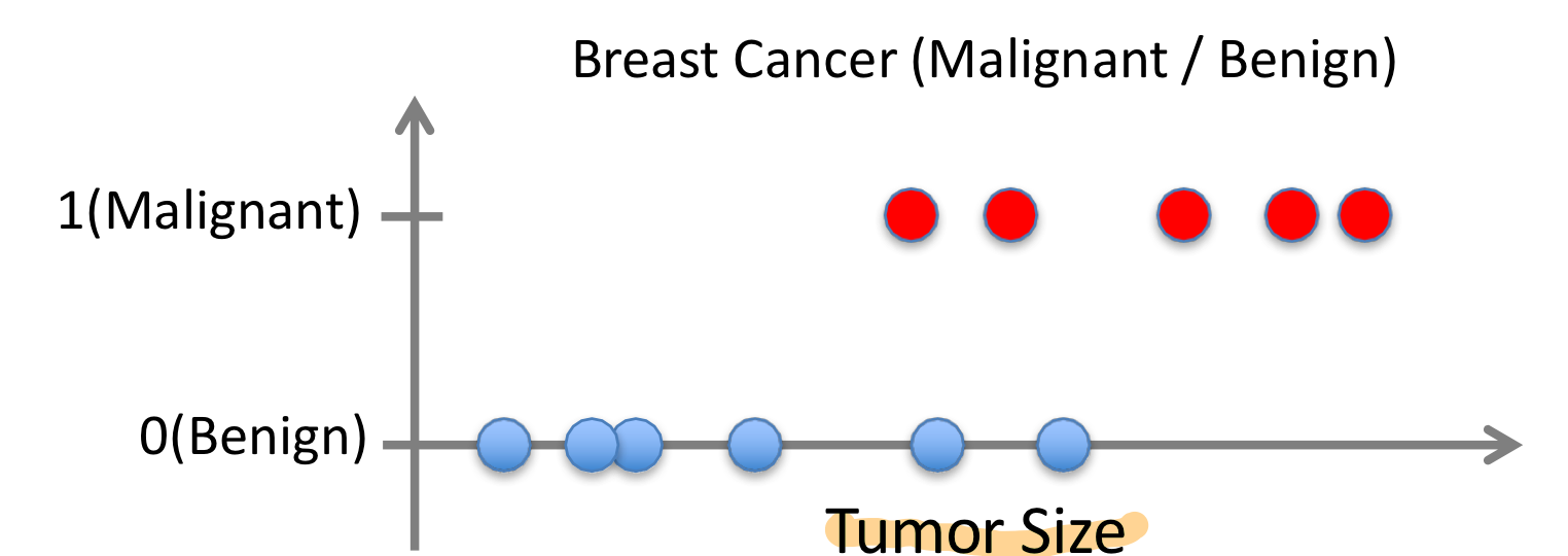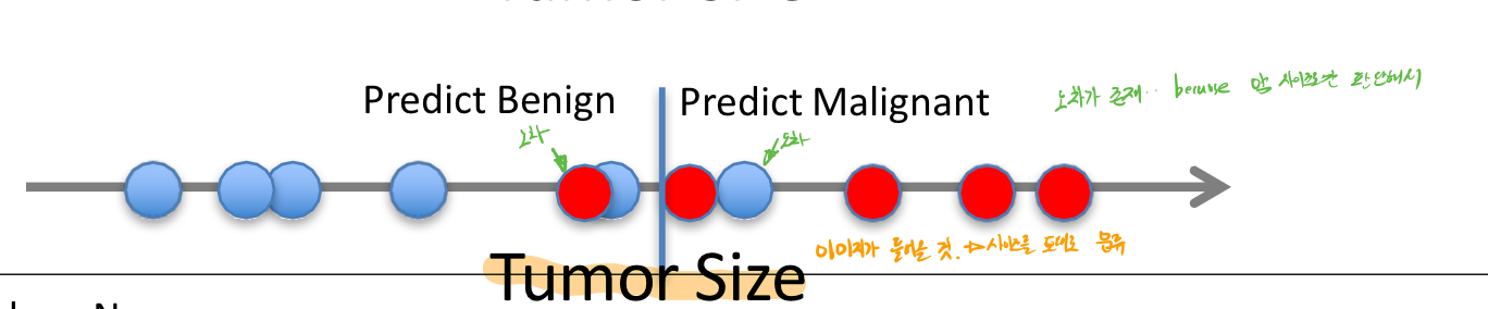 종양의 크기를 토대로 양성/음성 여부를 예측(분류) 할 수 있을 것이다.