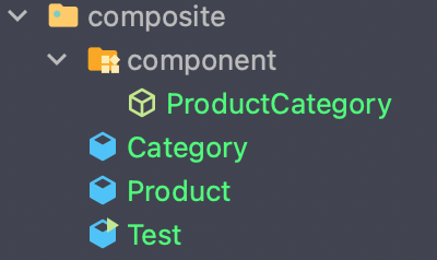 Product에서는 복합객체를 관리하는 행위에 대해서 정의할 필요가 없을 것이다. Category에서는 복합객체에 관리에 대한 정의를 구현해준다.
