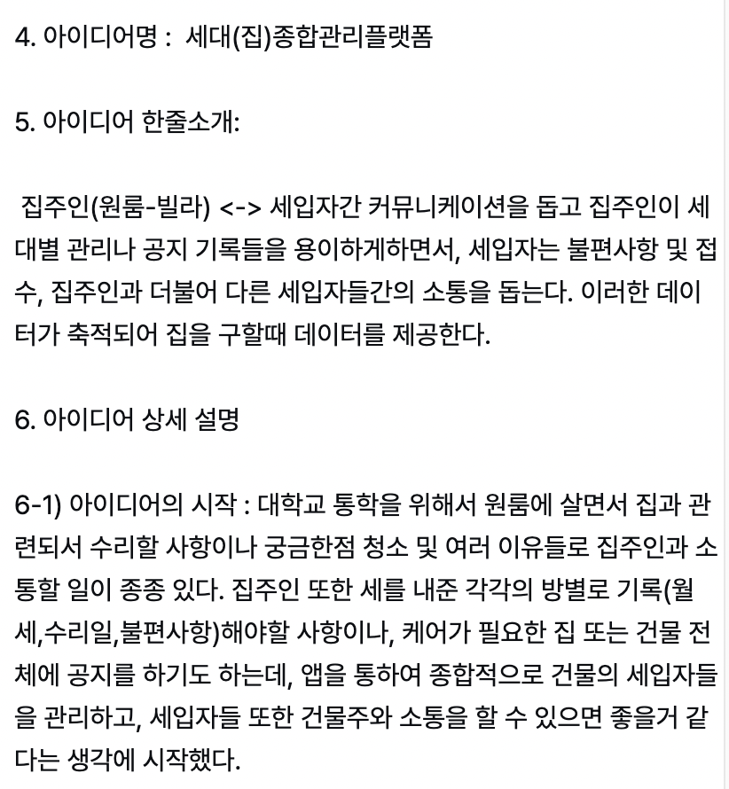 여튼 다른 개발자들의 엄청난 실력을 보고, 차라리 내가 사람을 뽑아보자 결심했다. 난 스타트업에 관심이 많았고 이때 그 열정이 가장 넘칠 시기였다. 더불어 메모장에다가 항상 기발한 아이디어를 적곤 했는데 이때를 틈타 내 아이디어를 올렸다. 근데 난 진심으로 이 서비스가 실생활에서 쓰이면 성공할 것 같다.