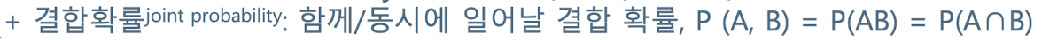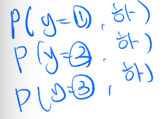 여튼 이렇게 몇개의 확률이 결합되어 나타나내느 형태를 결합확률이라고 하며 P(y=1, x=하얀)과 같이 표현하며, 두사건이 종속관계인지 독립관계인지 잘 알아야 한다.