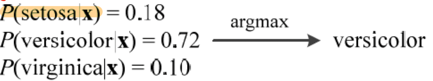 쉽게말해 x라는 데이터가 setosa일 확률, x라는 데이터가 versicolor일 확률, x라는 데이터가 virgincia일 확률 중 가장 높은 확률을 지니는(argMax)를 찾는 과정이다. 근데 이 사후 확률을 직접 구하는 것은 불가능하다. 그냥 데이터가 X일때 Y(IRIS)를 알 수 있다면 굳이 구할 필요도 없을 것이다. 우리는 우리가 가진 데이터들로 이 추정을 해내야 한다. 그렇기 때문에 베이지정리를 사용하여 우도확률과 사전확률을 사용 할 수 있다.