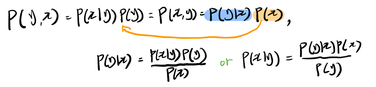 일어나지 않았거나 불확실한 사건에 대해서는 베이지안 확률을 구할 수 있다. 여기서 사후확률, 우도확률, 사전확률, 주변우도라는 개념이 등장한다. 우도는(likelihood)로써 우리의 데이터로 이미 알 수있는 상황이다. 사후 확률은 직접적으로 알 수 없다. 이런 사후 확률을 구하기 위해서 우도와 사전확률을 사용한다. 이 데이터들은 우리가 이미 알 수 있는 데이터이기 때문이다.