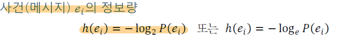 다시 말해 어떠한 한 사건에 대해서 표현하면 위와 같다. 로그의 밑이 2인 경우는 bit를 자연 상수인 경우는 나츠(nat)를 표현한다고 한다.