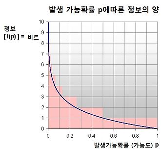 아래 이미지를 보면 발생확률에 따라서 정보비트가 커짐을 알 수 있다.
