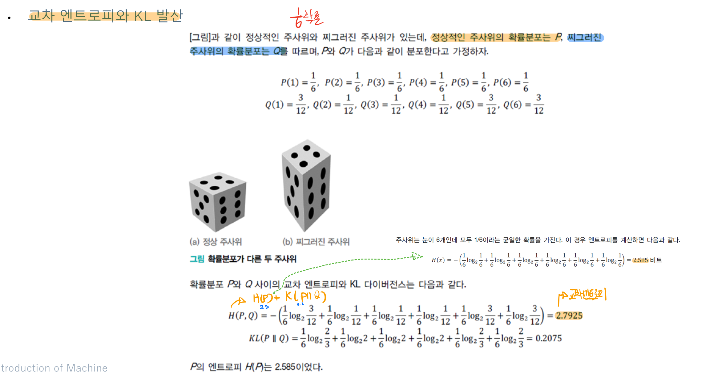 두 확률 분포 P와 Q 사이의 엔트로피를 나타낸다. 여기서 Q에 우리가 생각한 정보량을 넣어본다고 생각하면 된다.