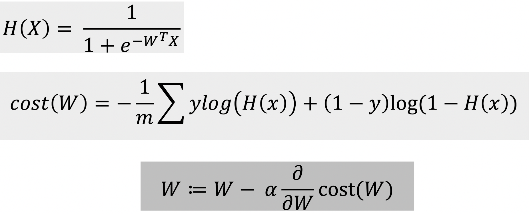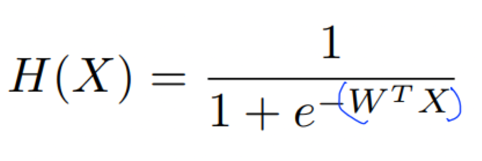 그렇다면 이 sigmoid함수에 H(x) = Wx, 즉 Wx를 넣어준다면 0과 1사이의 범위를 가지는 함수가 생길 것이다.