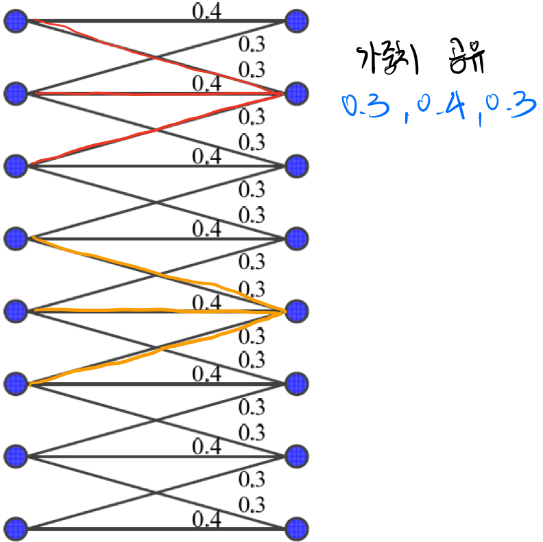 CNN의 합성공 연결층에서, 가중치 공유를 통해서 이를 구현 할 수 있다.