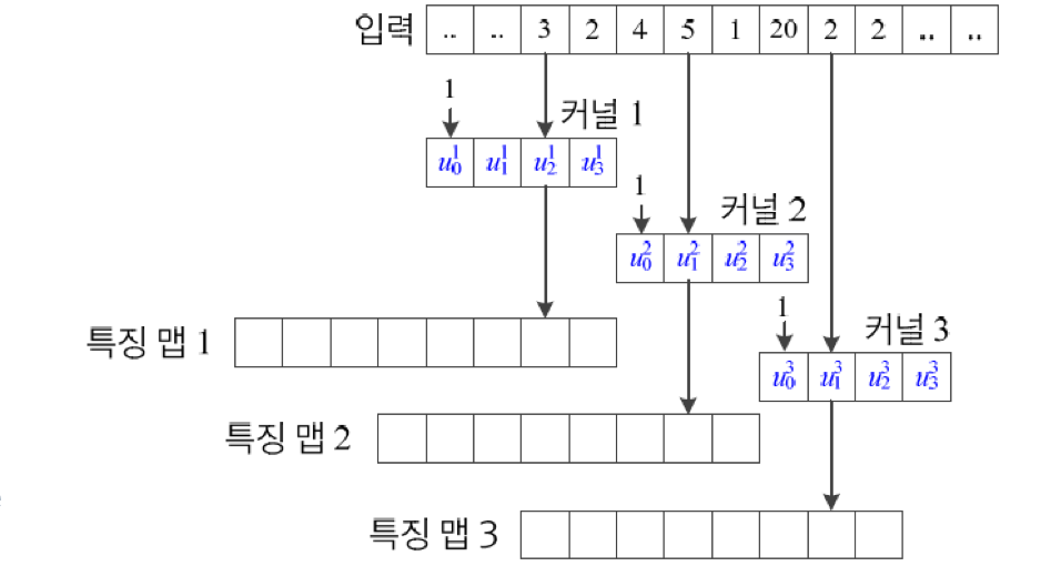 위 그림과 같이 3개의 가중치만을 공유하고 있음을 알 수 있다.