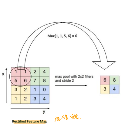 이렇게 특정 필터를 window로 하여, Image에 일정 보폭으로 이동하면서 Convolved Feature를 얻었다. 요소의 곱의 합을 이용한 선형연산 이었다.