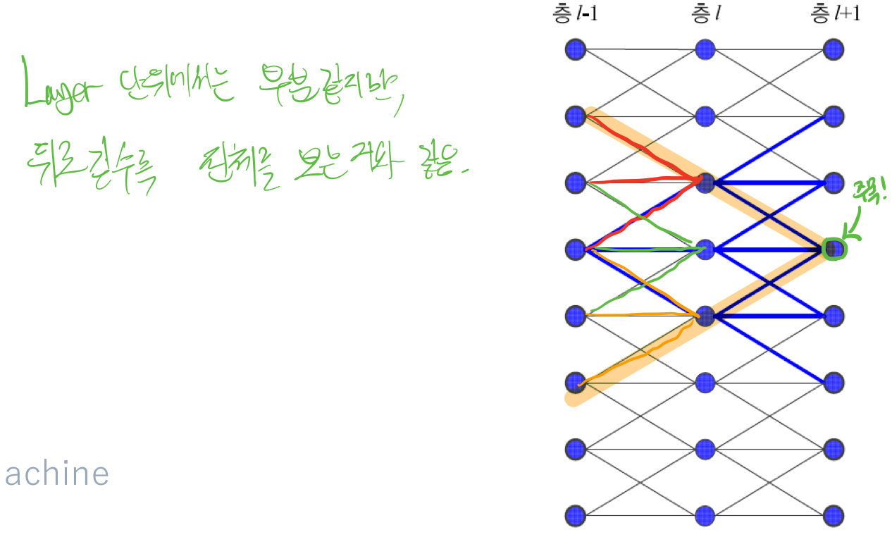 - 노드는 깊은 층을 거치면서 결국 전체에 영향을 미침. 점진적 통합 -> 추상화
