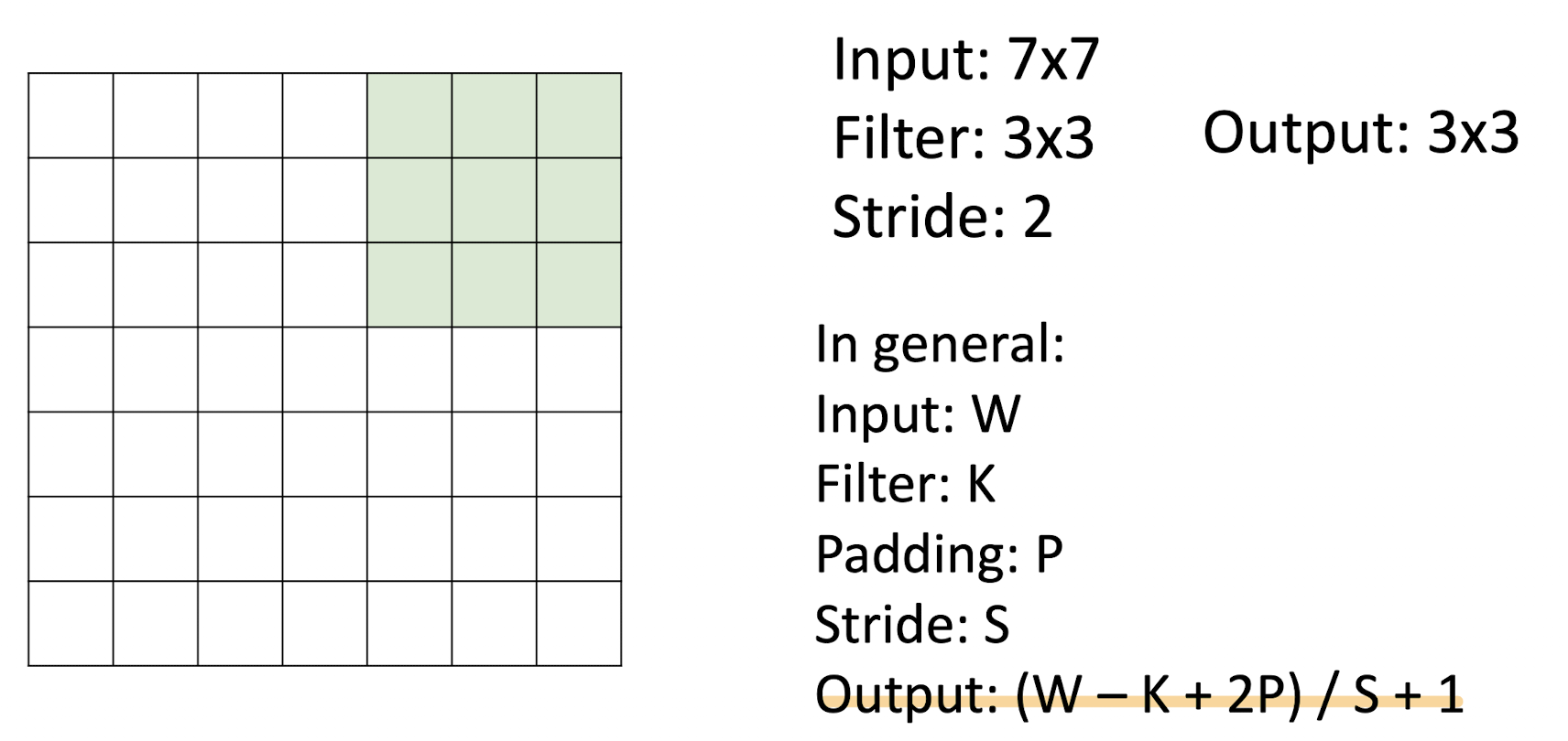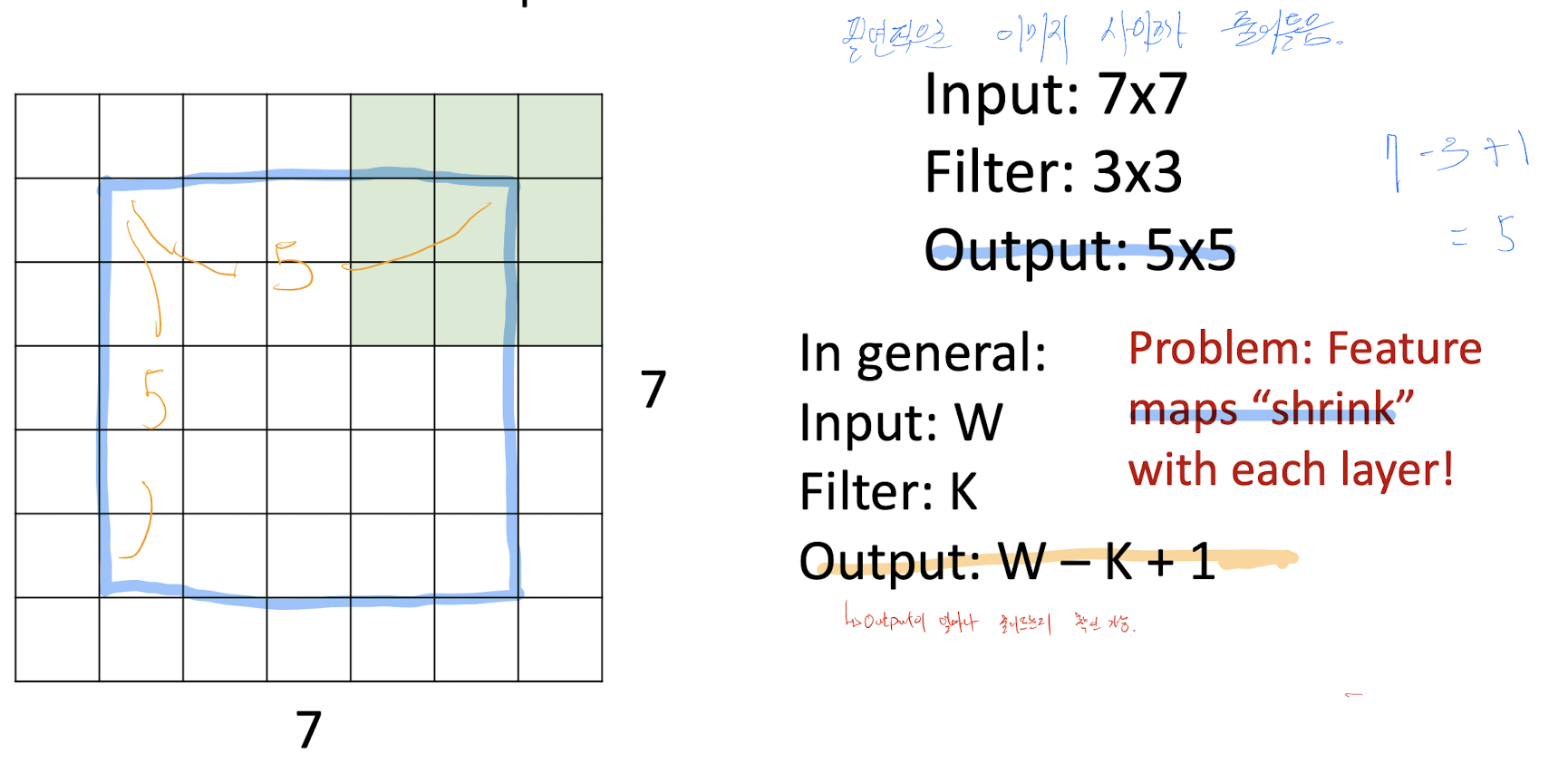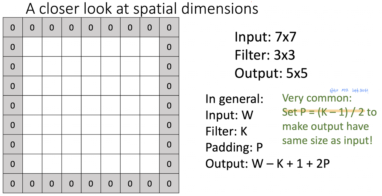 - Padding은 (K-1) / 2로 구할 수 있다.