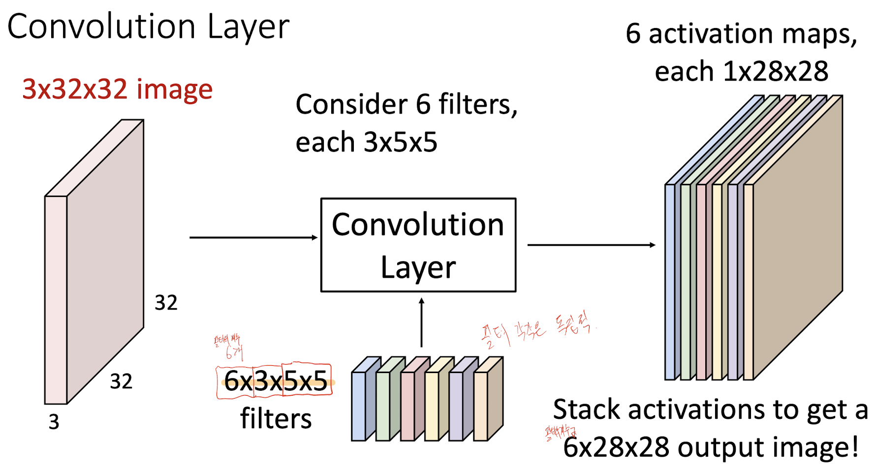 3*32*32의 Image에 3*5*5의 필터를 씌우면 해당 필터를 통해 얻은 하나의 Feature-map이 나올 것이다.