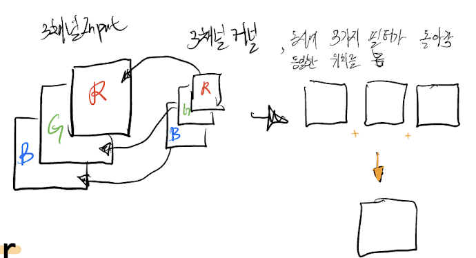 한 이미지(Input)에 대해서 여러개의 필터를 적용할수 있다. 여러개의 필터는 (Channel)*(필터가로)*(필터세로)에 필터의 갯수를 곱해주는 것이다.