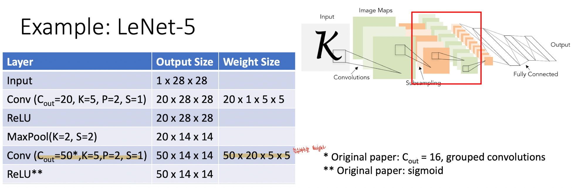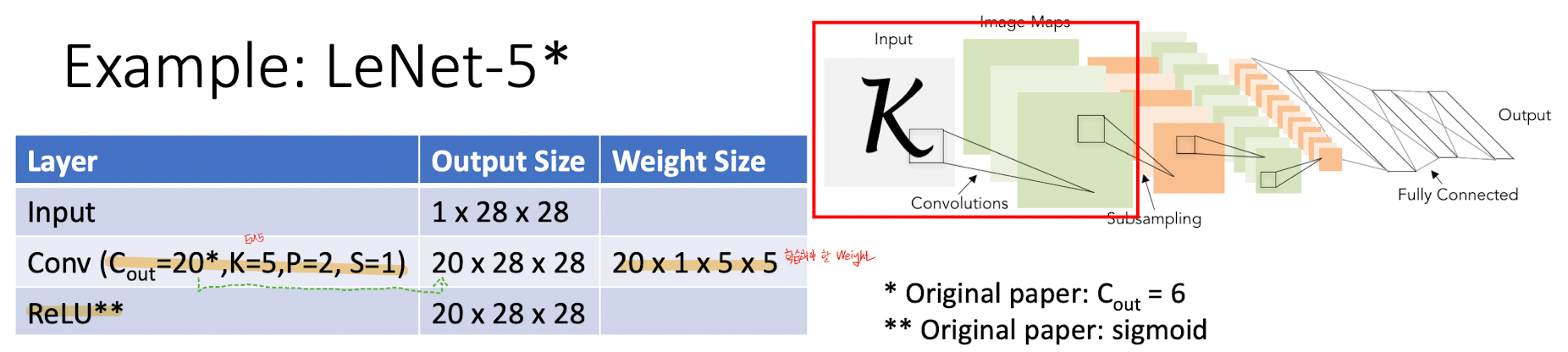 # LeNet-5예제로 Output Size와 Wieght Size 계산